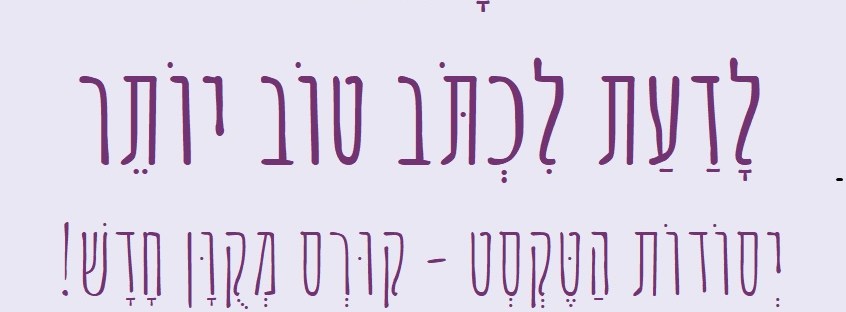 למדתם לכתוב בכיתה א'. או בגן חובה. או לפני, אם יצא ככה, או אחרי, אם יצא אחרת. בכל אופן, חיברתם אות לאות וזה יצר מילה, והמילה יצרה משפט, ואתם יודעים לכתוב בלי שגיאות כתיב (הלוואי), אבל עדיין משהו חסר. כלומר, בידע. אתם יודעים לכתוב בתבנית של מכתב, אבל לא יודעים למה תבנית של מכתב נראית ככה, ומה קורה אם משנים את הסדר של הפסקאות, ואיך בכלל יוצרים חלוקה לפסקאות. ואולי גם את זה אתם לא יודעים, רק יודעים שאתם רוצים לכתוב טוב יותר, אבל אין לכם מושג איך משפרים את הכתיבה שלכם. לא את היצירתיות, לא את הסיפורים, רק את הכתיבה.