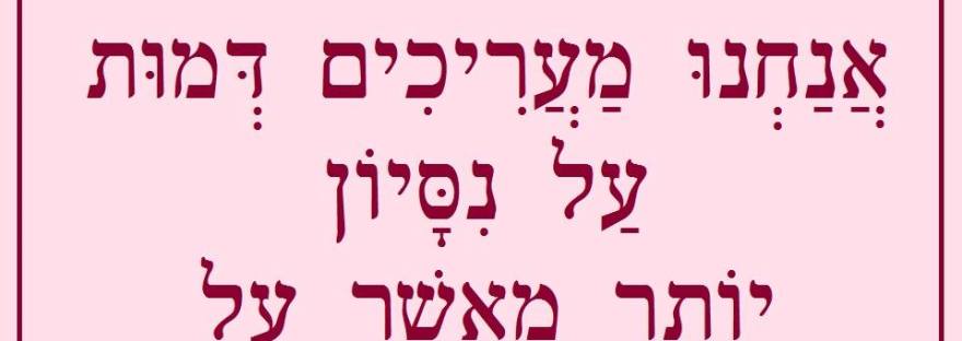 אנחנו יכולים להראות את ד"ר נוית קרבון, מדענית משוגעת עם חיבה למשקפיים סגולים, עושה ניסיונות במעבדה בניסיון ליצור איזה גביש מיוחד. האם זה גורם לכם להעריך אותה? לא בהכרח. אנחנו יכולים לראות אותה מנסה ואז מצליחה, האם זה יגרום לכם להעריך אותה? ואם היא תיכשל? בקיצור, לא בהכרח. אם נבין למה היא רוצה ליצור את הגביש הזה, הנסיונות שלה יטענו במשמעות פנימית, וממילא זה יעבוד.